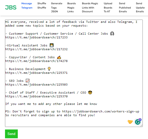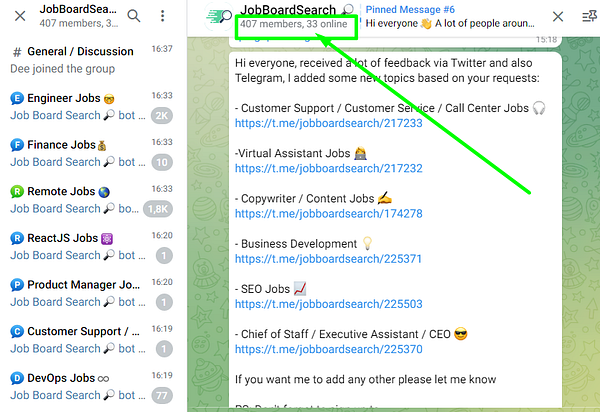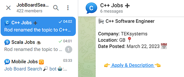 Add C++, Scala, Mobile topics to the job seekers telegram group