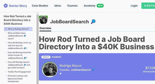 #jobboardsearch is at Starter Story by the great Pat walls