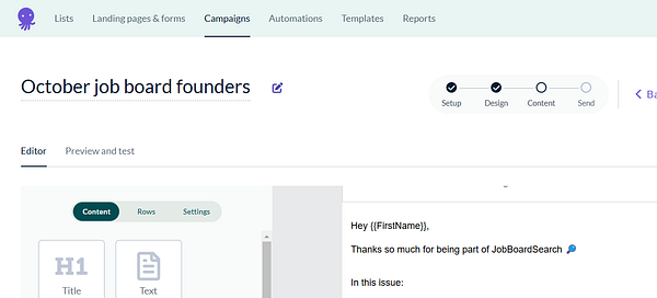 Drop daughter at training and cowork in the venue. Work in the job boar founders newsletter