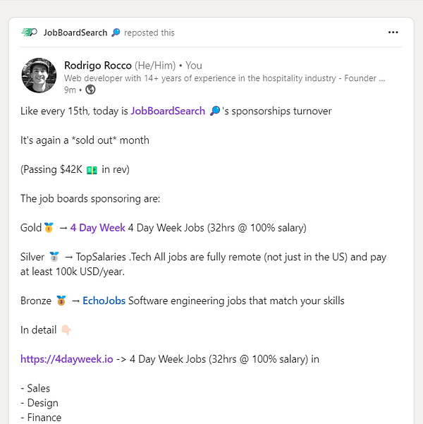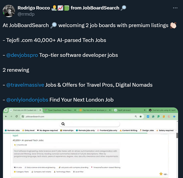 Post about the Silver Sponsorship for job boards available x.com/rrmdp/status/1811747439…