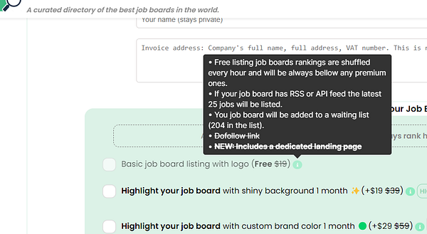 Update tooltips details to let job board founders know that links are not "dofollow"