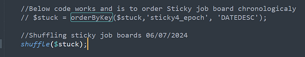 Change the algo so the Sticky job board get shuffled when caching gets flushed every hour