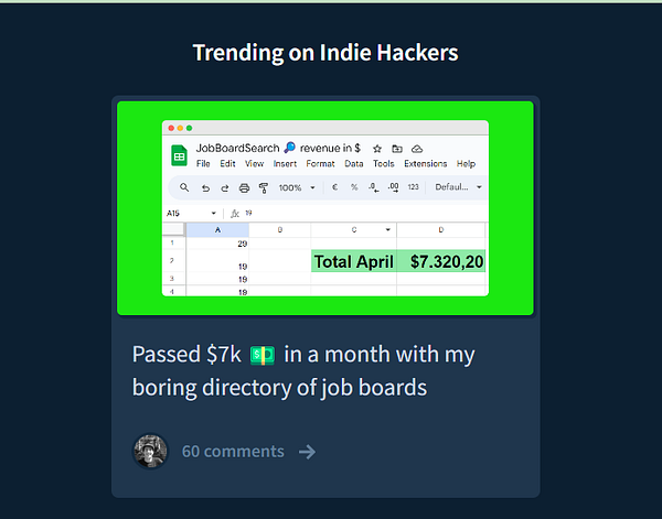 Get featured on the Indie Hackers home page and see traffic from them too