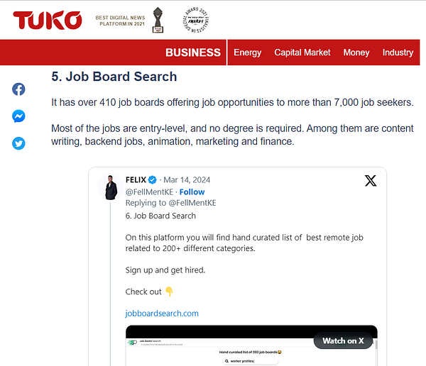#jobboardsearch was mentioned in a newspaper from Kenia with 7M monthly visiotrs
