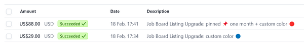 Manually send a PayPal link and get paid because job board founder wanted a premium listing but didn't have a credit card