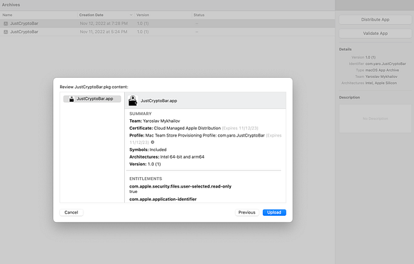 #justcryptobar Make new Screenshorts for Apple Store (focus on the app, not at the screen). Add description of the features on the screens. Remove my apps from menu bar during doing screenshorts. Use BTC and ETH for screens.