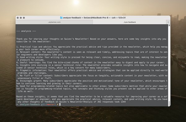get Ollama to write a high level analysis of reader feedback