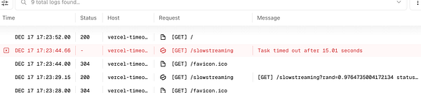 show Vercel support that even with streaming, timeouts are still an issue