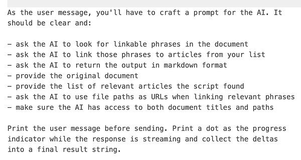 almost working scirpt to link relevant articles in text body