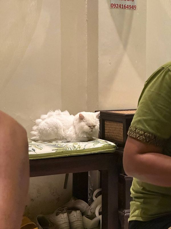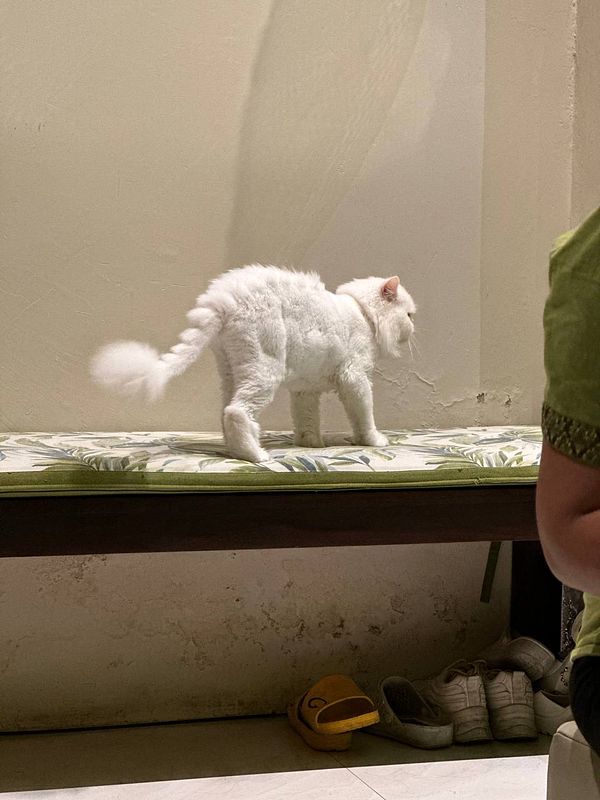 see fluffy white dino-cat 😂