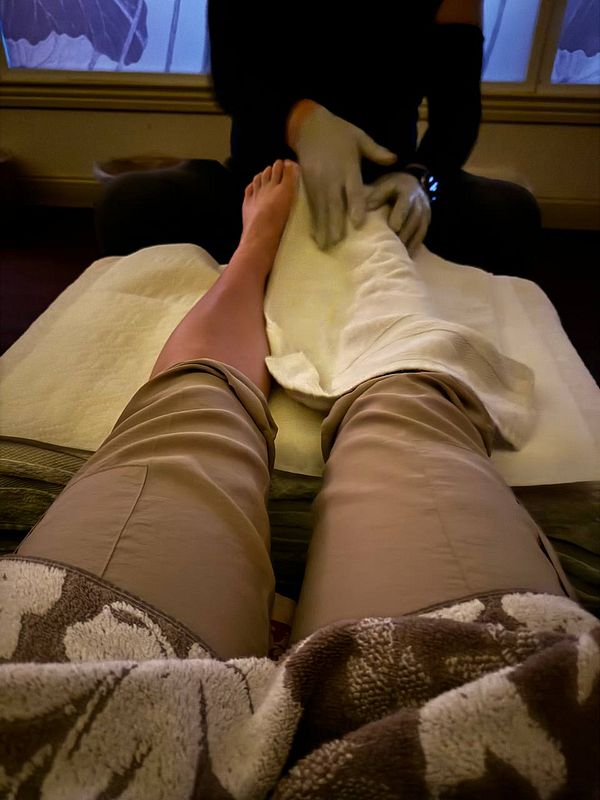 go foot massage for relex after missing our flight because we couldn’t open your new suitcase to put all things inside