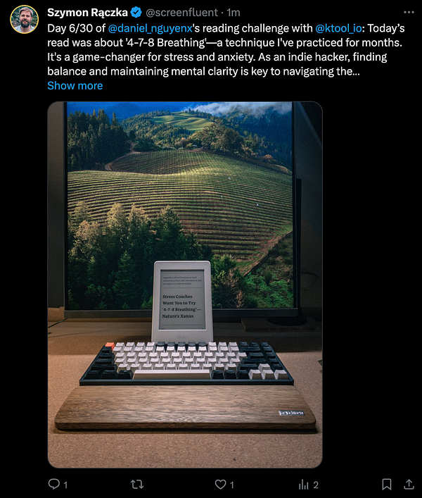 Day 5/30 of @daniel_nguyenx's reading challenge with @ktool_io: Just tested sending an article directly to my Kindle - it’s flawless! 🌟 (skipped today’s X post to give today’s hit more reach)