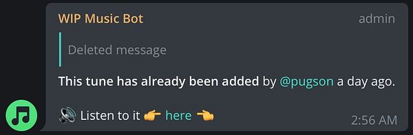 make @wipmusicbot use the original username from the person that the message is being forwarded from