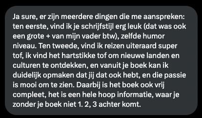read feedback on book which is exactly what I’m aiming for when writing and feel great about it