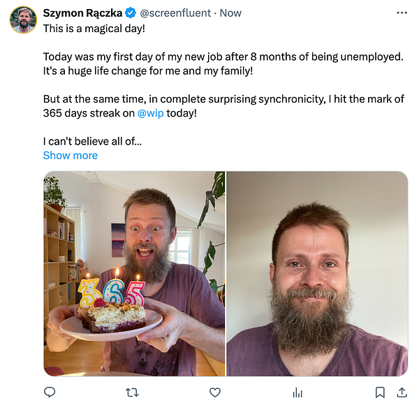 Celebrating 365-day streak! Thank you, everyone! You've become part of my life forever! x.com/screenfluent/status/179…