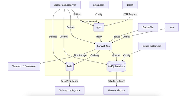 Super happy, finally went through local Laravel Docker setup. Based on current files, asked Claude in Cursor to generate cool diagram.
