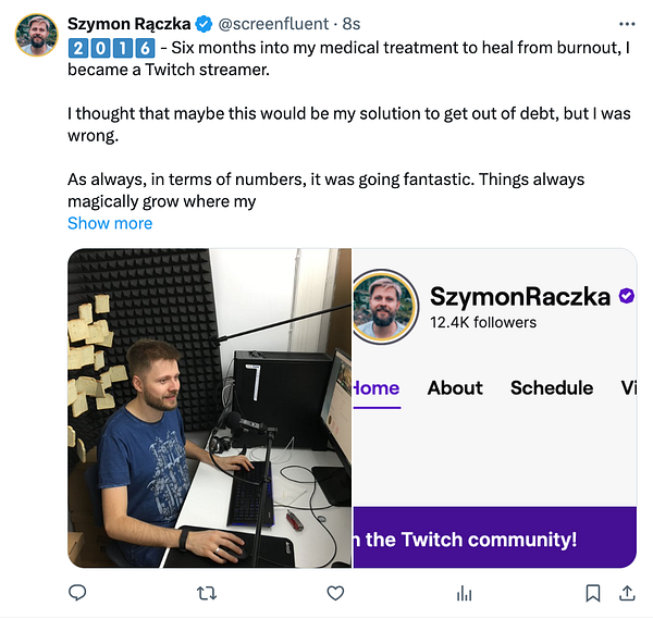 Completely forgot about one chapter of my life, streaming on Twitch, so I posted about it: x.com/screenfluent/status/179…