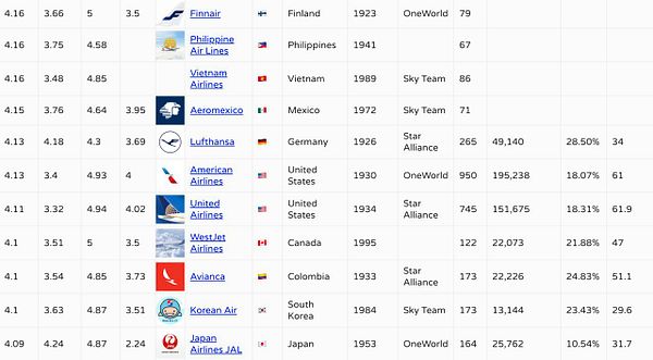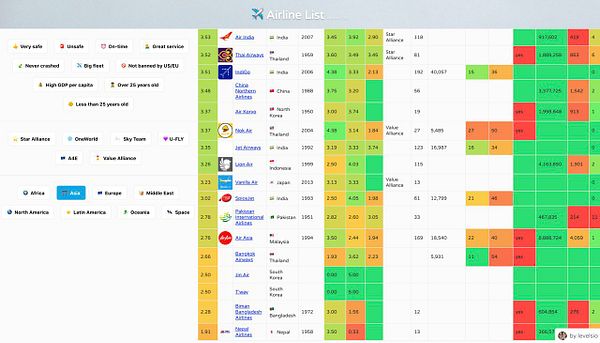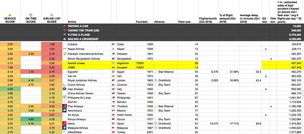 A list of airlines by safety, quality and ratings
