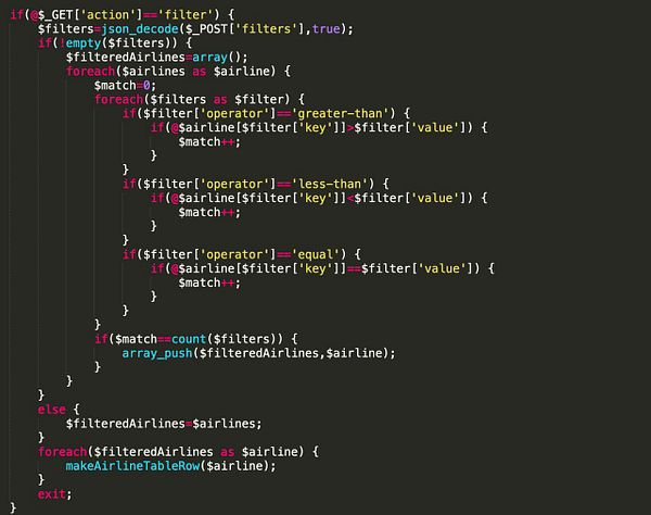 build filter logic with key, operator and value on back end
