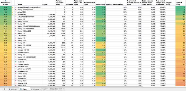 add Airplane Scores based on safety, comfort and oxygen levels