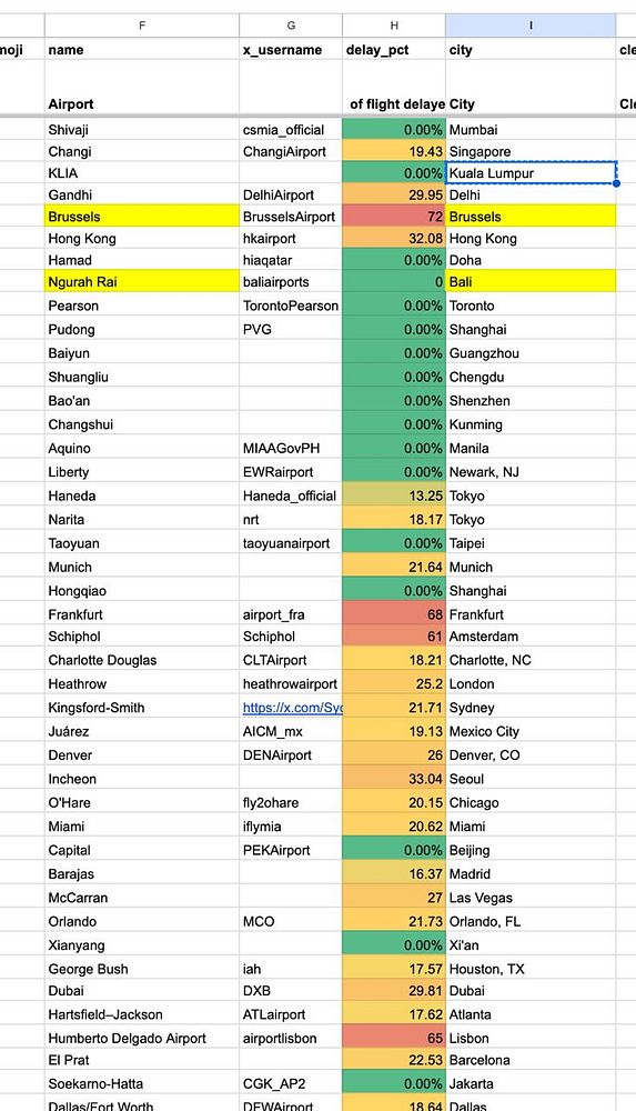 manually collect the X usernames for hundreds of airports to rank airports for lost luggage too