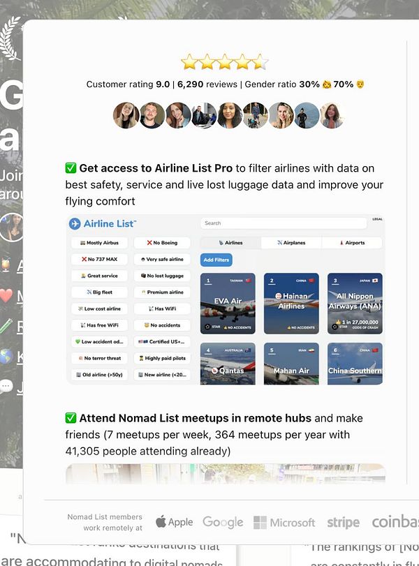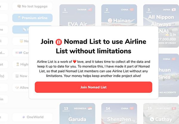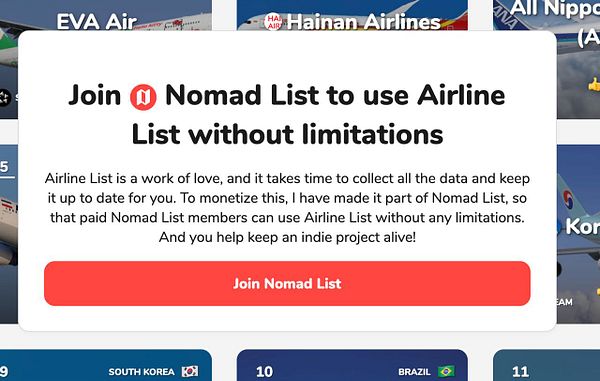 users to 1 filter and then join Nomad List for unlimited access