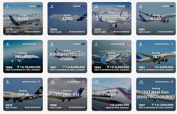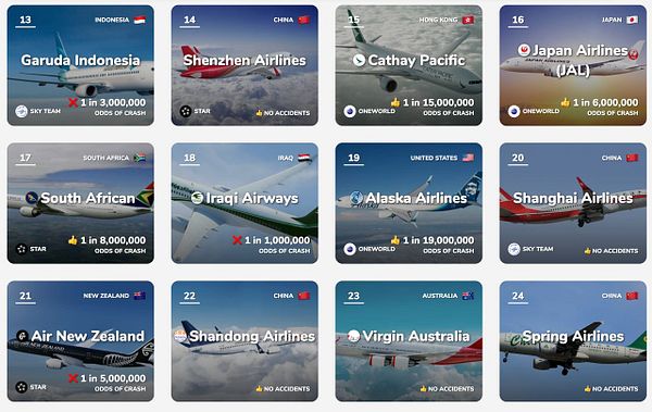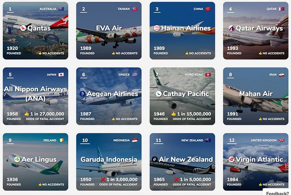 A list of airlines by safety, quality and ratings