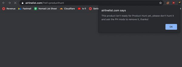 #airlinelist live and put add alert box if ?ref=producthunt because it’s not ready to be hunted yet