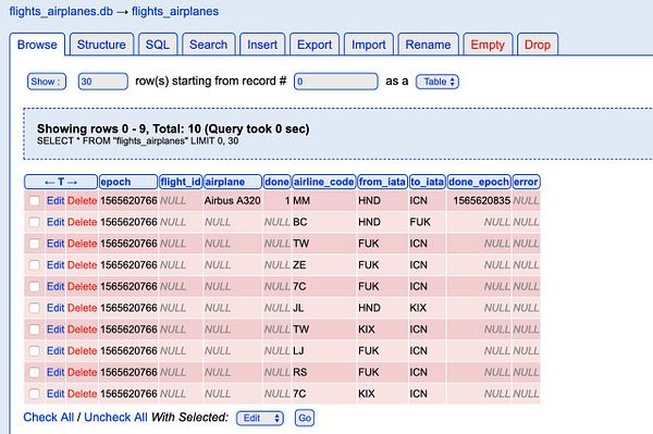 make airplane finder cron robot that searches flight sites for the FROM and TO airport and AIRLINE and then searches the airplane models and saves them to a db which client can later query from AJAX