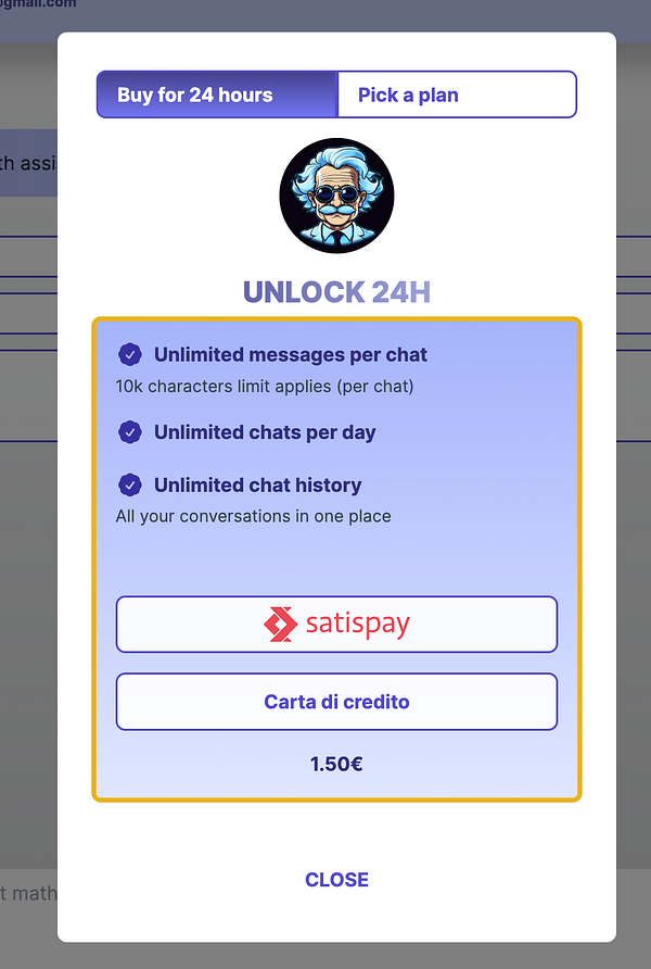Finalised the update to pricing to allow "unlock premium for 24 hours". Can do with Satispay if user is based in Italy