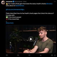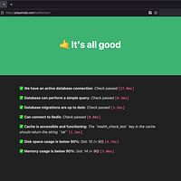 Add quick, simple, and beautiful health checks to your Rails application via a /healthcheck page. You can then use that endpoint to monitor the health of your application via UptimeRobot, Pingdom, etc.