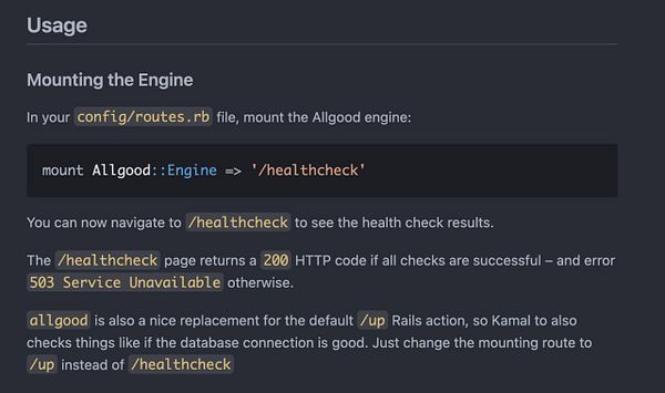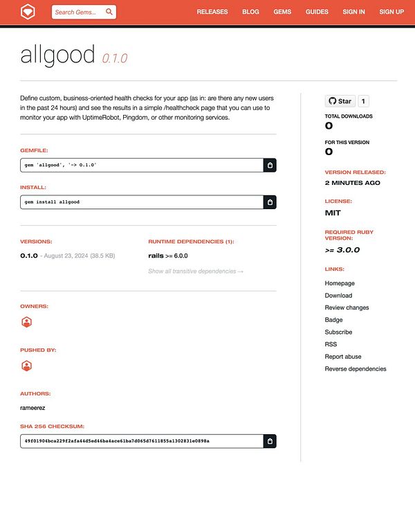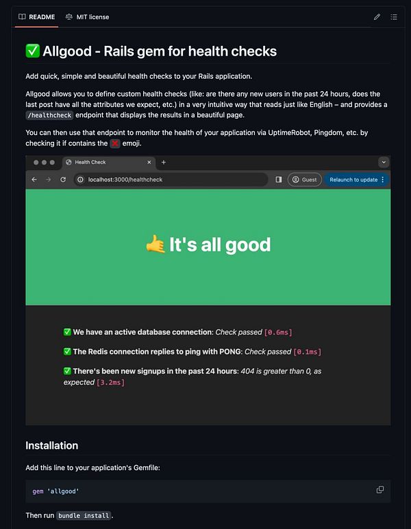 Add quick, simple, and beautiful health checks to your Rails application via a /healthcheck page. You can then use that endpoint to monitor the health of your application via UptimeRobot, Pingdom, etc.