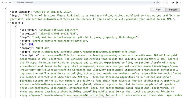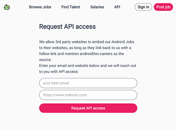 Make API that returns last 7 day of jobs, so that others can add Android Jobs on their websites