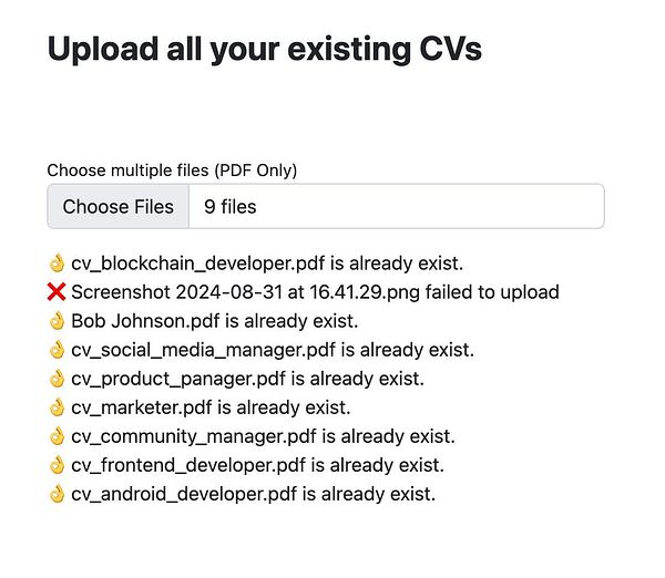 #applicantai add bulk CV upload for customer who have already existing applicant CVs