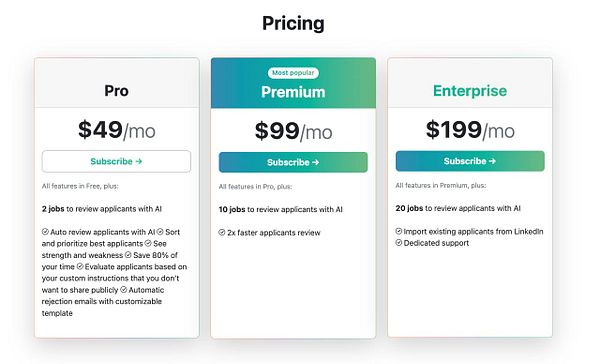 #applicantai after click on a blured text or button go to pricing page with 3 plans