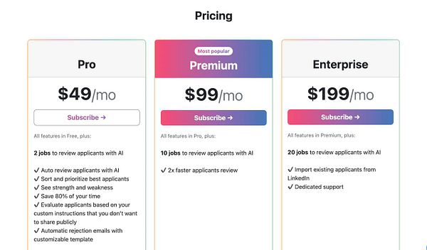 #applicantai show pricing page immediately after registration cuz we need to be more aggressive
