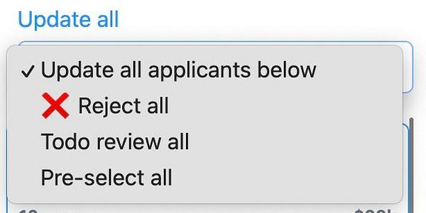 #applicantai improve update all option. switch from buttons to drop down to make update all more flexible and move applicants to different stages, cuz buttons are very limited. customer asked