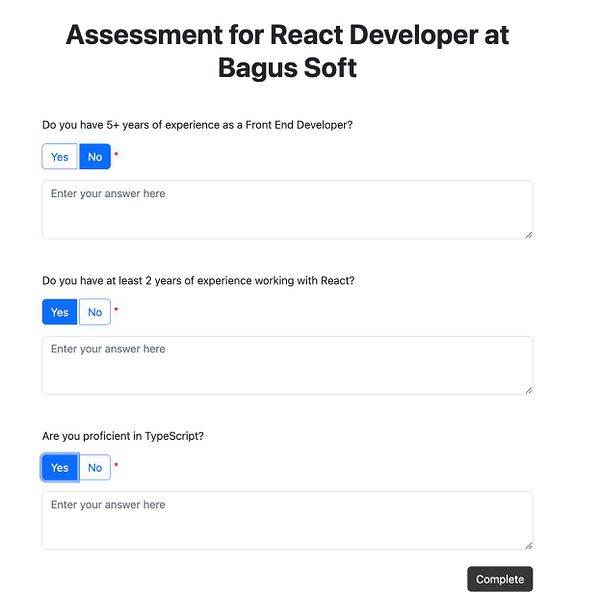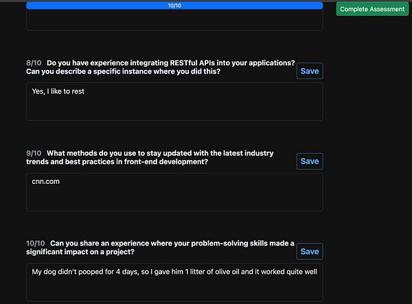#applicantai assessments. show complete assessment button if all questions have been answered