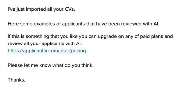 #applicantai import 48 applicants manually from Google Drive to a user and offer a paid plan. “Do things that don’t scale” (c)