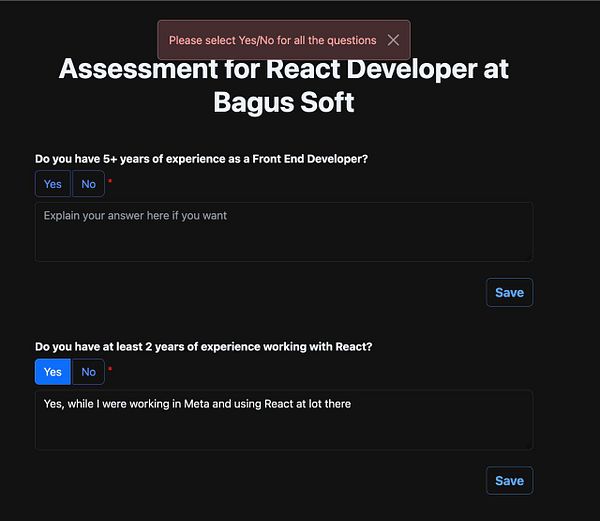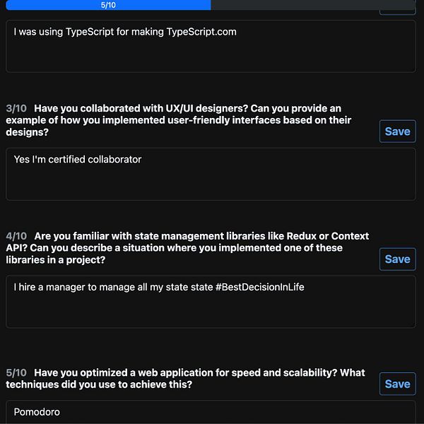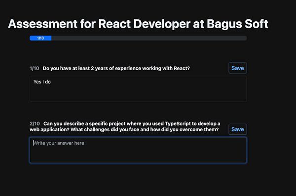 #applicantai assessments. add progress bar and show only next question to make it easier to answer (before was all in once)