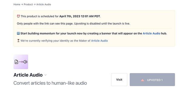 Launch Article.Audio on Product Hunt www.producthunt.com/posts/art… (You know what to do? ❤️)