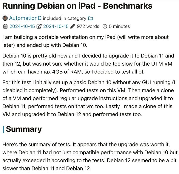 publish Debian 10 vs Debian 11 vs Debian 12 on iPad performance benchmarks