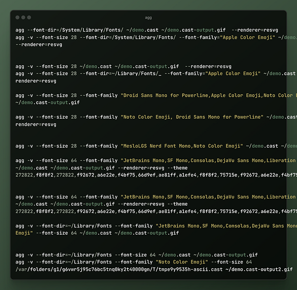 finally figure out how to convert asciinema cast to gif with emojis. Puppeteer + ffmpeg