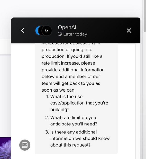ask DALL-E again for rate limit increase to 250/min