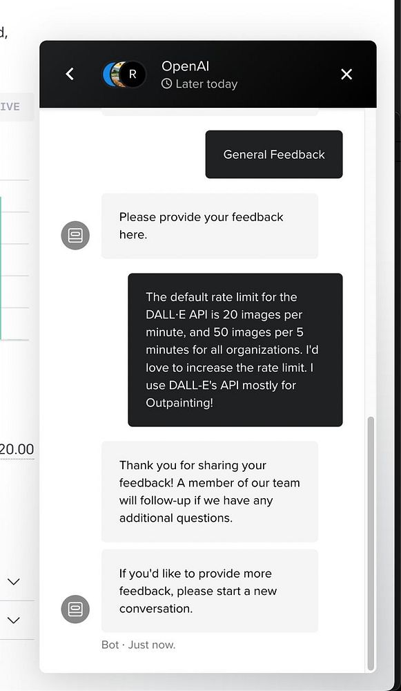 ask OpenAI to increase my DALL-E rate limit for