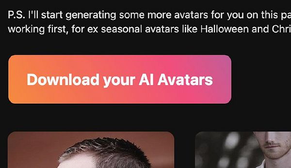 add [ Download your AI Avatars ] button that ZIPs all the images