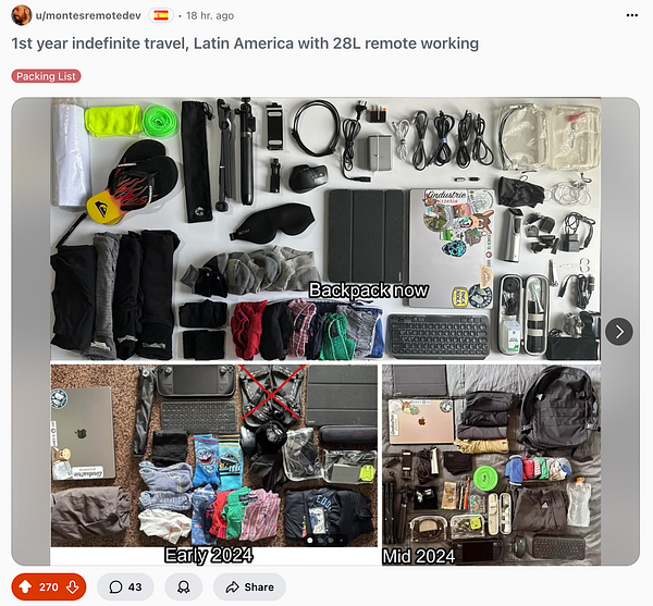 48h of my reddit post are gone! I enjoyed a lot posting and sharing my packing year with the people of OneBag (117K views in 48h!!!!) and also got around 400 visits to #bagsoup buuut sadly ZERO registrations 😩 Now I must think about the next move and maybe forget at least about the social part of BagSoup because it's very unlikely I'll find a more focused group than this 😭