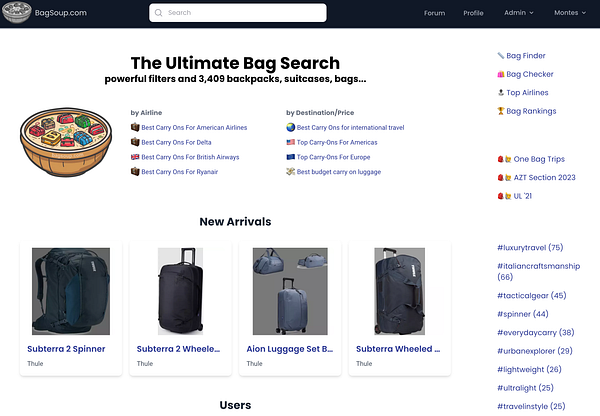 The best searchable bags DB (backpacks/suitcases)