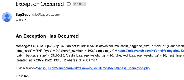Checking and cleaning exceptions received from email #bagsoup