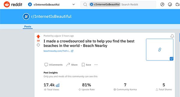 get first 10 upvotes on r/InternetIsBeautiful